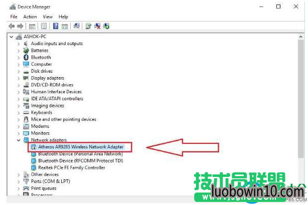 3)网络适配器上单击,选择无线网络适配器(你可以看到一个具有向下的箭头,左键点击一个)信号