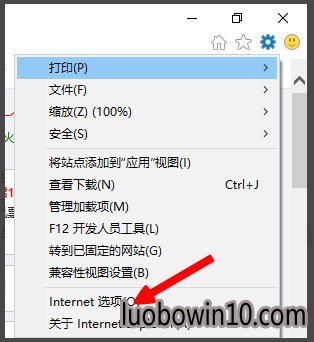 1、打开iE浏览器,点击左上方【设置】选项,在弹出的菜单栏点击【internet选项】;