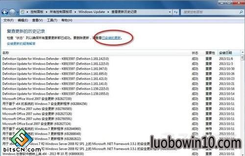 第二,选择查看历史更新记录,点击上方的已安装更新。